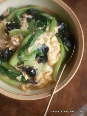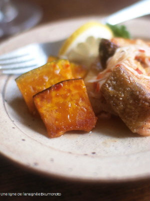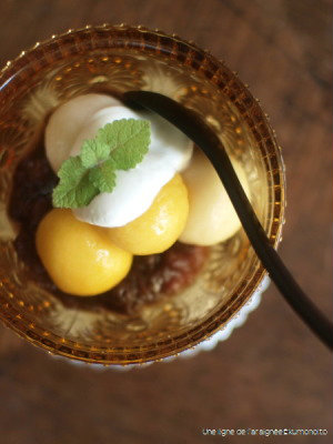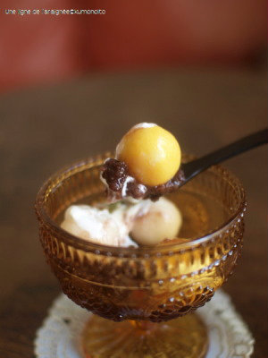 アーモンド散らしーの、食べーの。ゆで卵的なものは